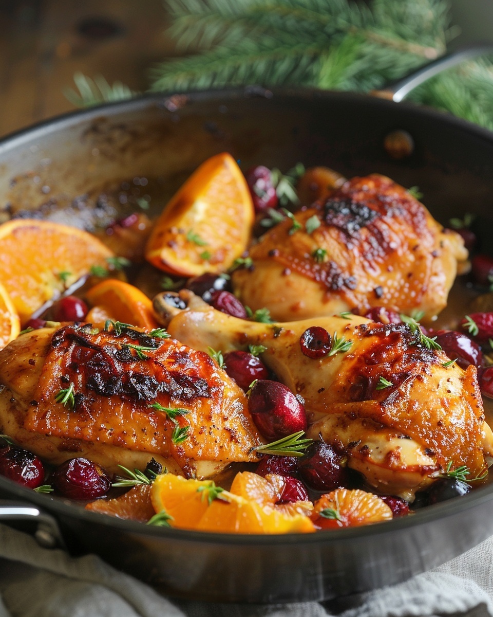 Skillet cranberry orange chicken is a vibrant, one-pan dish that brings together sweet, tangy, and savory flavors in a cozy, satisfying way. Juicy chicken thighs are seared until golden, then simmered in a sticky cranberry-orange glaze that feels festive and fresh. I love how the flavors balance perfectly—zesty citrus, tart cranberries, and rich caramelized pan juices.