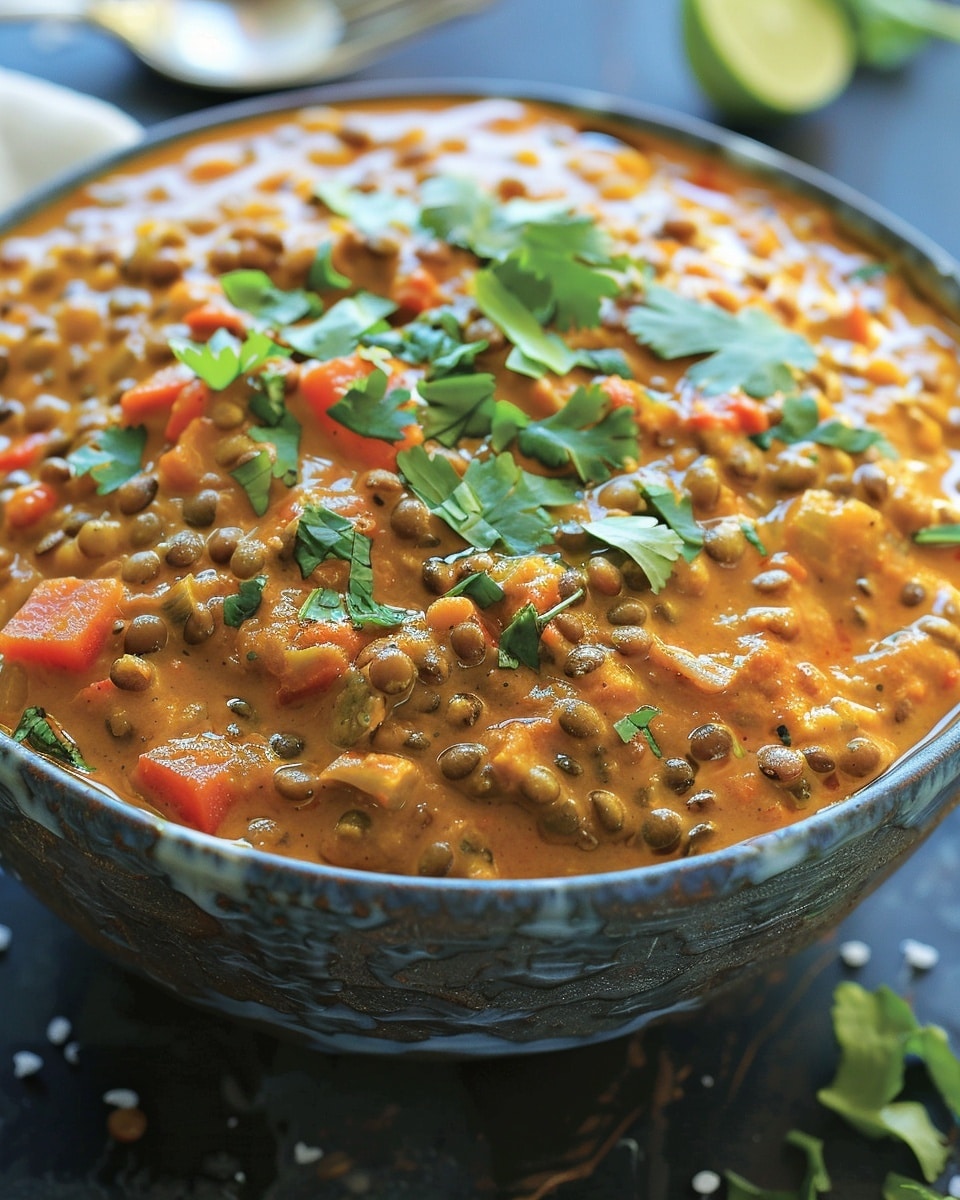 Creamy and comforting Slow Cooker Coconut Curry Lentils simmered in rich coconut milk and warm spices. This hearty plant-based dish is flavorful, nourishing, and perfect for cozy dinners or meal prep.