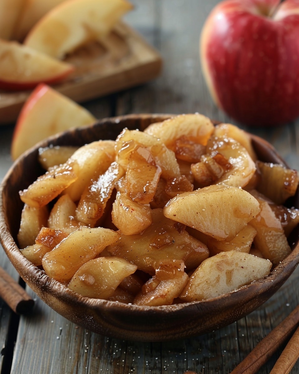 I store leftover fried apples in an airtight container in the fridge for up to 4 days. To reheat, I warm them in a saucepan over low heat or in the microwave in 30-second intervals until heated through. I sometimes add a splash of water or apple juice to loosen the sauce if it thickens too much after chilling. These apples also freeze well for up to 2 months—just thaw and reheat when ready.