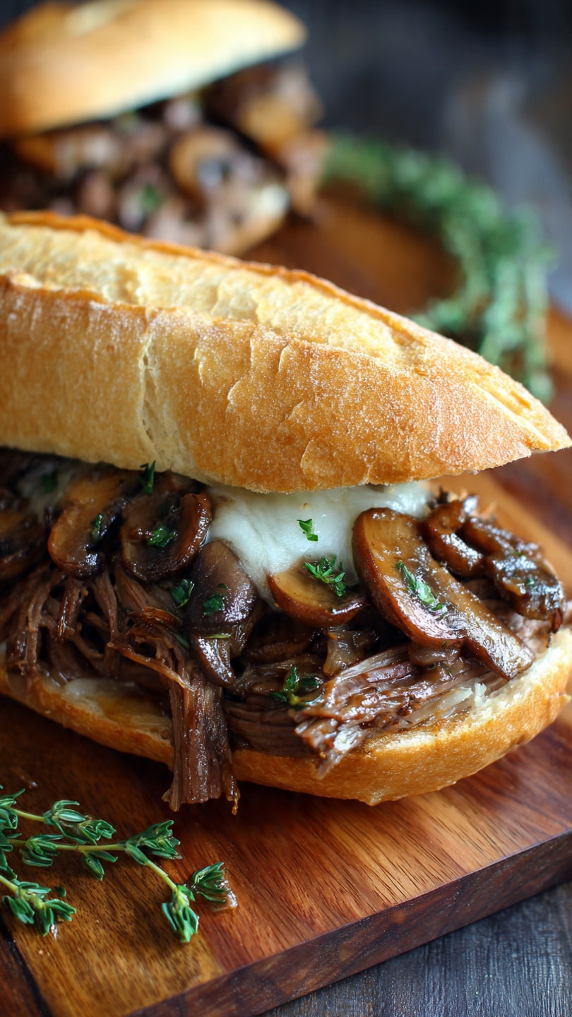 I love how effortlessly delicious these sandwiches are. The slow cooker does all the work, and by the time dinner rolls around, I have fall-apart beef, garlicky mushrooms, and a deep, savory broth that makes every bite irresistible. It’s great for feeding a crowd or meal prepping for the week, and the dip-friendly format makes it fun and satisfying to eat.