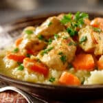 A hearty, hands-off slow cooker meal with tender chicken, soft vegetables, and a rich garlic butter sauce that delivers big comfort and flavor with minimal effort.