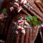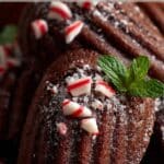 Soft, cake-like chocolate peppermint madeleines with a festive candy cane crunch, combining rich cocoa flavor and cool peppermint in an elegant, bakery-style treat.