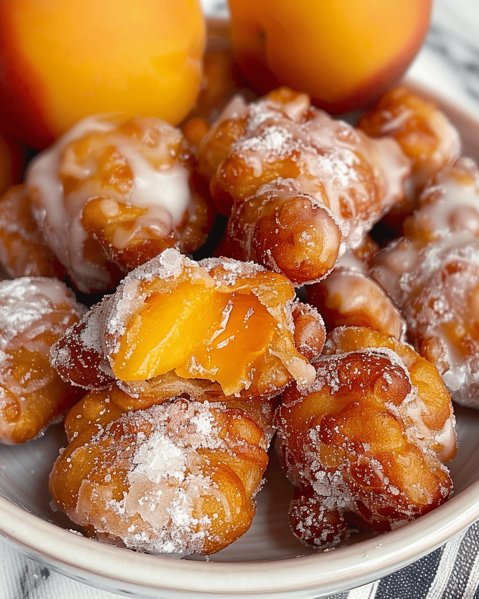 Golden, fluffy sourdough fritter bites studded with juicy peaches and warm spices—crispy outside, tender inside, and perfect for snacking, brunch, or dessert.