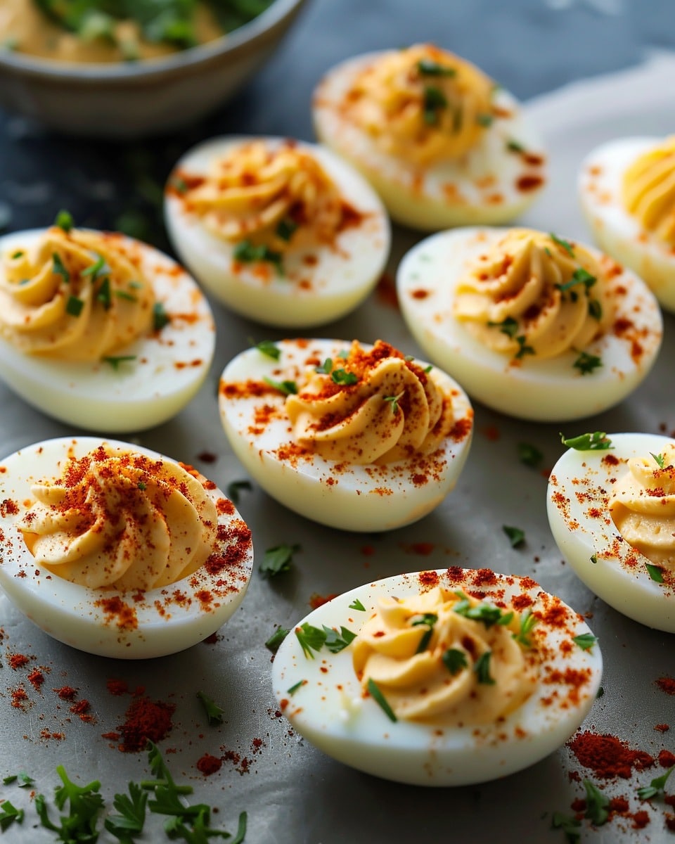 Spicy Chili Garlic Deviled Eggs take the classic appetizer and give it a bold, fiery twist. I love how the creamy yolk filling gets a spicy kick from chili garlic sauce, balanced with just enough tang to keep it addictive. These eggs are the perfect bite-sized snack for parties, potlucks, or whenever I want something that packs a punch.