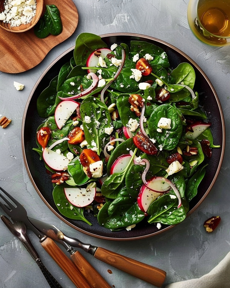 I love how versatile and simple this salad is. It’s the kind of recipe I can throw together in minutes with whatever I have on hand, and it always tastes amazing. The freshness of the spinach pairs beautifully with creamy elements like cheese or avocado, and I get to customize it endlessly. It’s great for meal prep, picnics, lunch, or dinner—and it always makes me feel good after eating it.