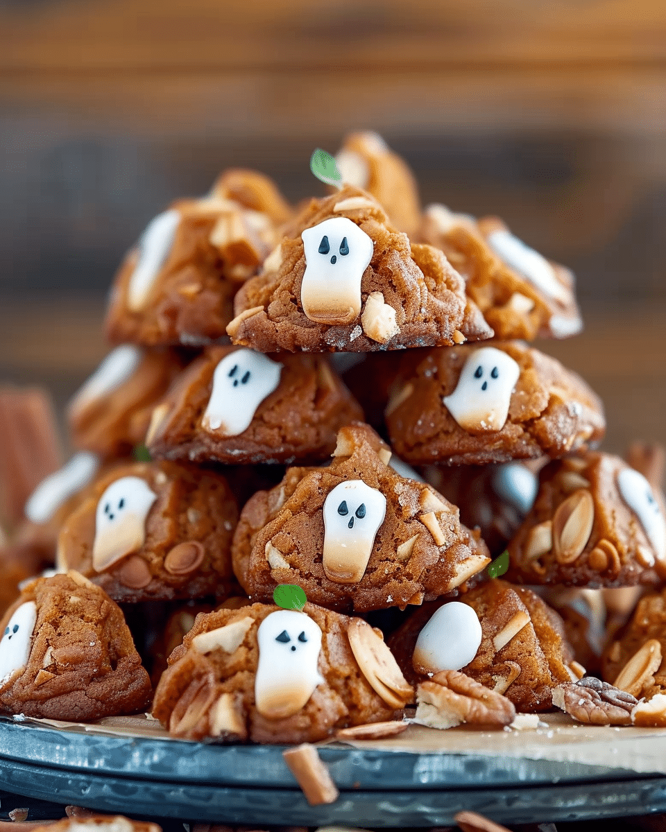 These Spooky Ghost Brown Butter Pumpkin Cookies are soft, chewy, and full of cozy fall flavor with nutty browned butter, warm pumpkin spice, and real pumpkin purée. Decorated with white chocolate or icing ghosts, they’re the ultimate festive Halloween cookie for parties, trick-or-treating, or spooky movie nights.