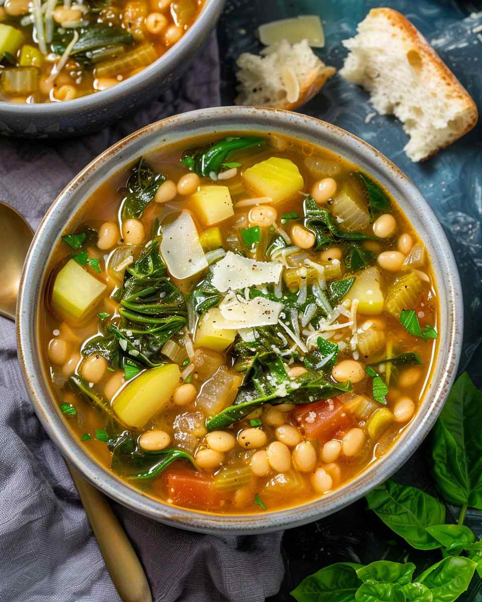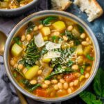 A light and vibrant spring minestrone soup filled with fresh seasonal vegetables, tender beans, and small pasta in a flavorful broth, perfect for a nourishing and comforting meal.
