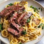 - Top with sliced steak or mix it into the pasta.