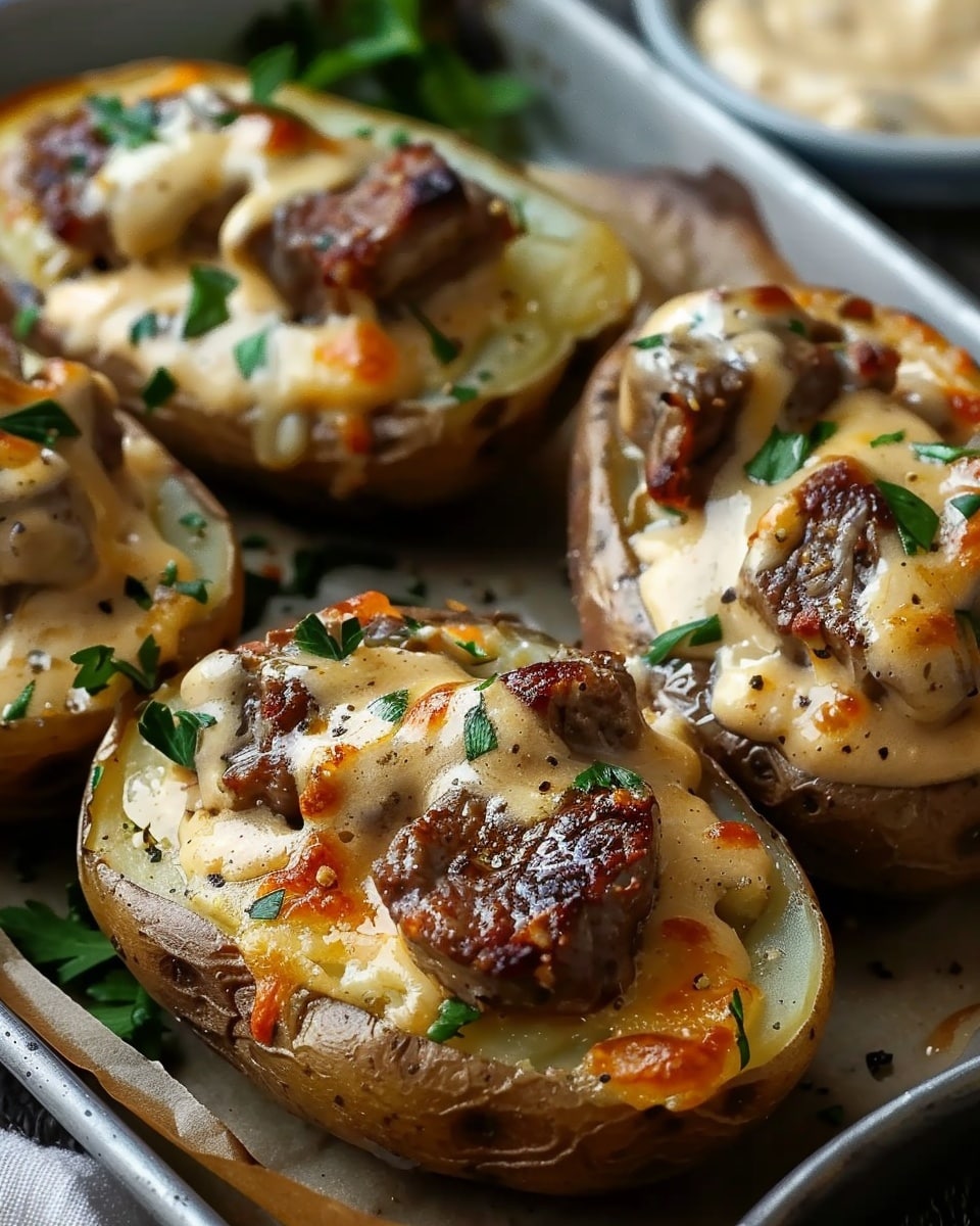 Steak-stuffed baked potatoes are a delicious and satisfying meal that combines two classics in the best possible way. I love how customizable they are and how they turn simple ingredients into something bold and crave-worthy. Whether I’m feeding guests or just treating myself, this is one of my go-to comfort meals that never disappoints.