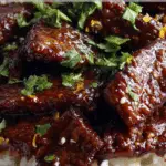 - Heat oil in a skillet or wok over medium-high heat. Sear beef in batches for 2–3 minutes per side until browned and crispy. Set aside.