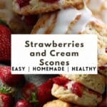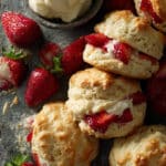 Tender, buttery scones filled with fresh strawberries and finished with a cream glaze or sugar topping. These strawberries and cream scones are a lightly sweet, elegant treat perfect for breakfast or brunch.