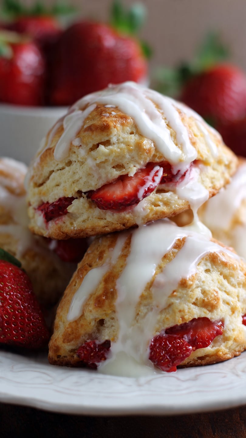 Sometimes I add a touch of lemon zest to the dough for a citrusy contrast. If I want a richer texture, I substitute half the cream with sour cream or buttermilk. For extra decadence, I mix in white chocolate chips or top the scones with a cream cheese glaze. If I don’t have fresh strawberries, I use freeze-dried ones for a burst of flavor without the moisture.