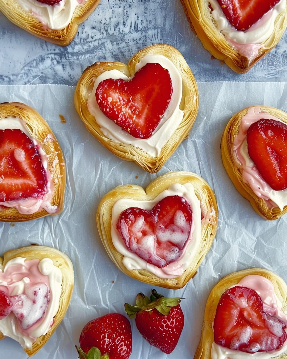 I love this recipe because it looks impressive but is actually super easy to pull off, especially with store-bought puff pastry. The cream cheese layer is rich and smooth, the strawberry filling adds fruity brightness, and the heart shape makes the whole treat feel extra special. Whether I’m baking for loved ones or just treating myself, these danishes are a sweet way to celebrate.