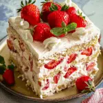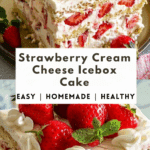 Strawberry cream cheese icebox cake is an easy, no-bake dessert made with layers of graham crackers, creamy cheesecake filling, and fresh strawberries. This chilled strawberry dessert is perfect for summer gatherings, potlucks, or holidays. With just 20 minutes of prep, it’s a make-ahead treat that’s light, refreshing, and irresistibly creamy.