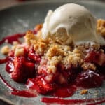 This strawberry crumble recipe is one of my go-to desserts when I want something fruity, warm, and comforting with minimal effort. Juicy strawberries bubble beneath a golden, buttery topping that’s crisp on the outside and soft underneath. It’s the perfect balance of tart and sweet—and even better with a scoop of vanilla ice cream on top.