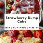 Strawberry Dump Cake is an easy, no-mix dessert with layers of sweet strawberry filling, cake mix, and butter. Baked to golden perfection, it’s a simple, crowd-pleasing treat that tastes like a mix between cobbler and cake.