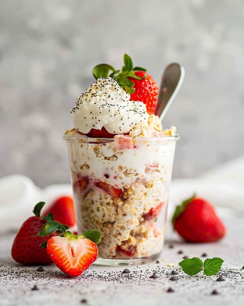 I enjoy how easy and convenient this recipe is. I can prepare it the night before, and it’s ready to grab in the morning. The flavors remind me of classic strawberry shortcake, but in a healthier and more filling form.