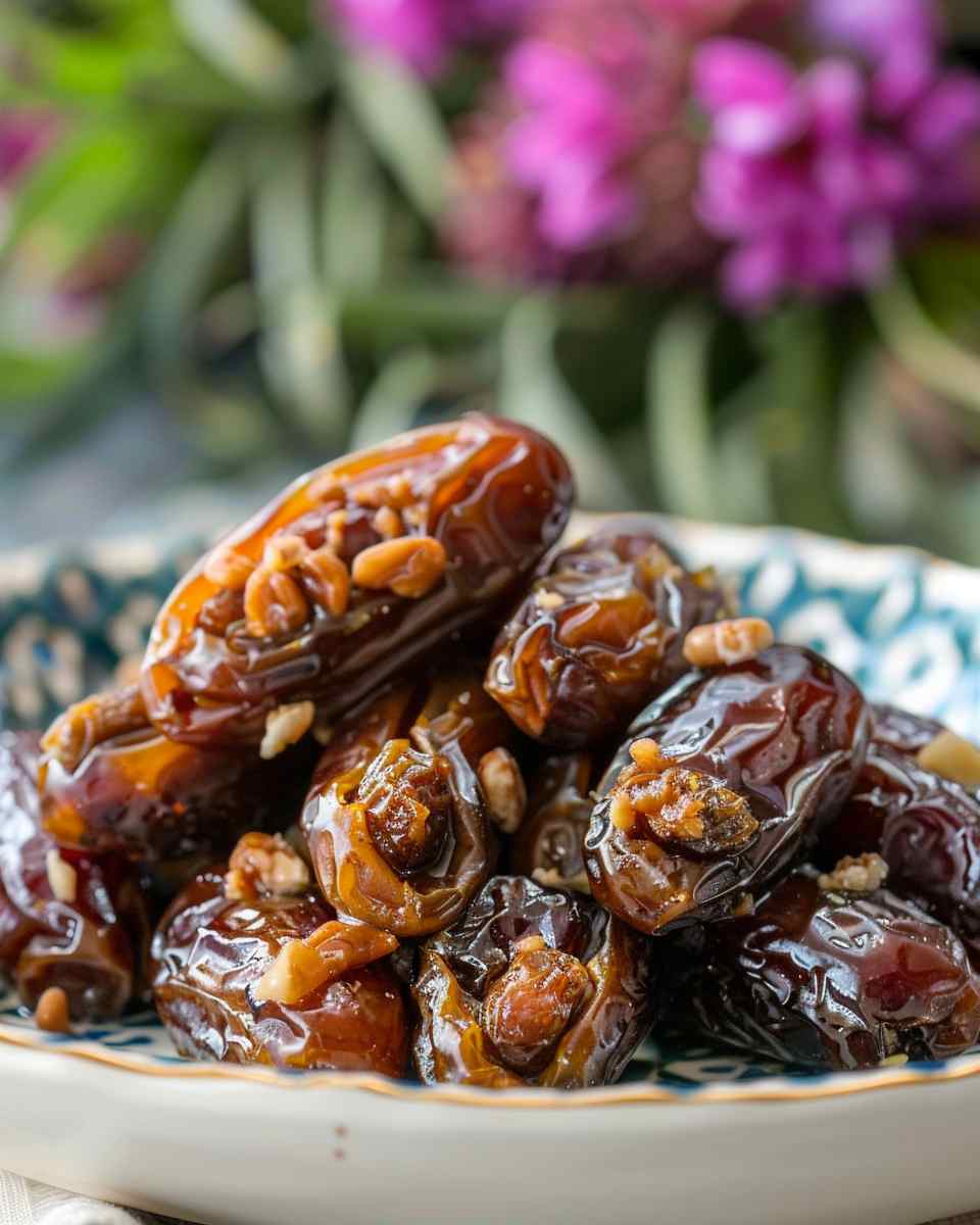 I store the stuffed dates in an airtight container in the refrigerator for up to 3–4 days. I let them sit at room temperature for a few minutes before serving for the best texture. I don’t reheat them.