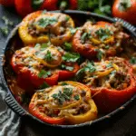 I like that this casserole captures the nostalgic taste of traditional stuffed peppers without the hassle of actually stuffing them. It’s all made in one dish, which means fewer dishes to wash and more time to relax. The combination of savory beef, sweet bell peppers, and gooey melted cheese is simply irresistible. It also reheats like a dream, so leftovers never go to waste.