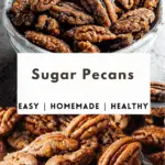 Sugar Pecans are the ultimate sweet and crunchy snack made with just a handful of pantry staples. Coated in cinnamon-spiced sugar and baked to golden perfection, these easy candied pecans are perfect for gifting, topping salads, or enjoying by the handful. Ready in just 35 minutes!