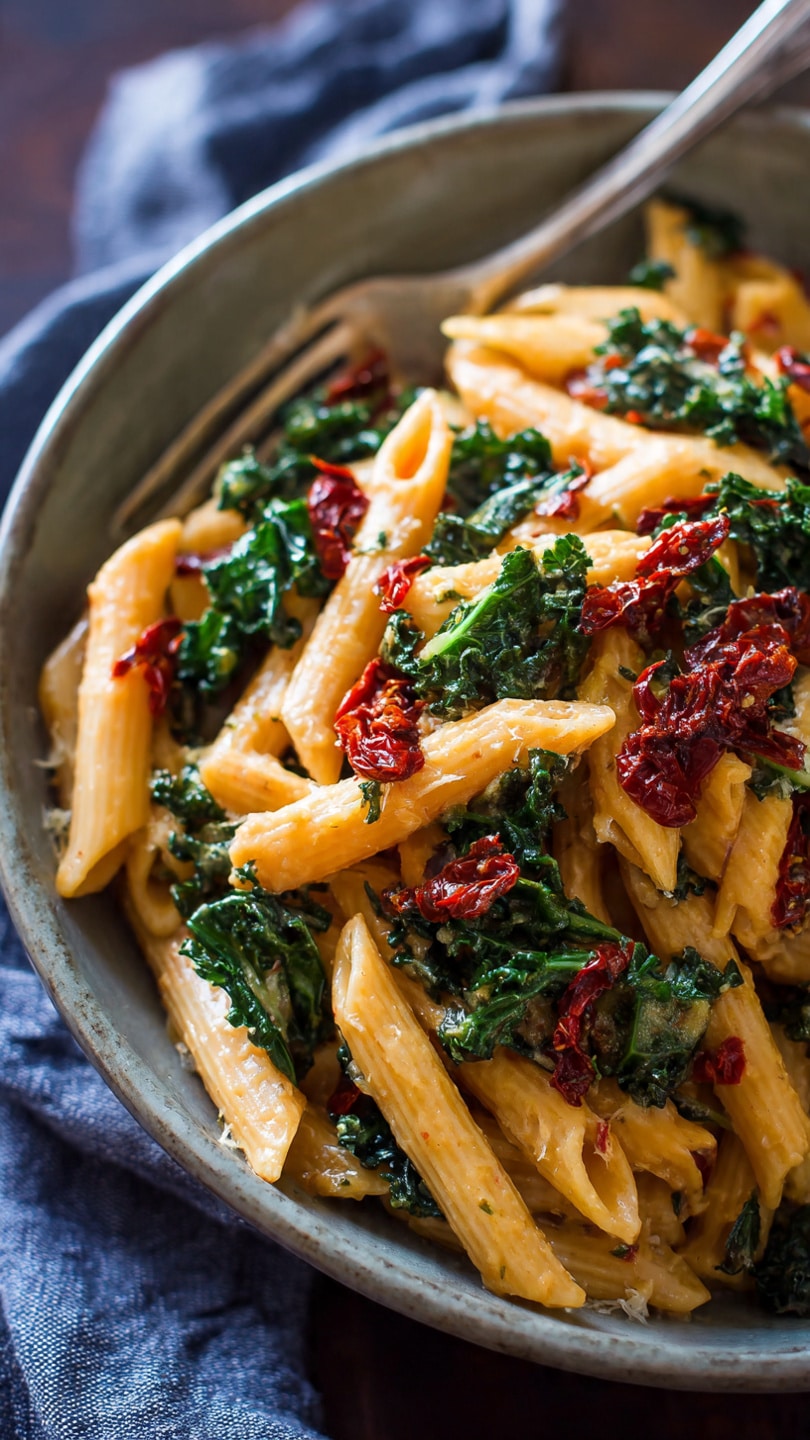 Sun Dried Tomato Pasta with Kale is a creamy, garlicky pasta dish bursting with tangy-sweet sun-dried tomatoes and hearty kale. It’s a bold, quick, and comforting recipe perfect for weeknights.