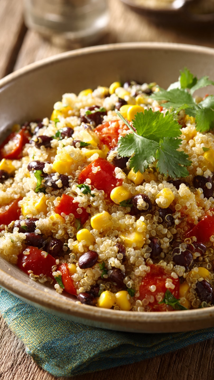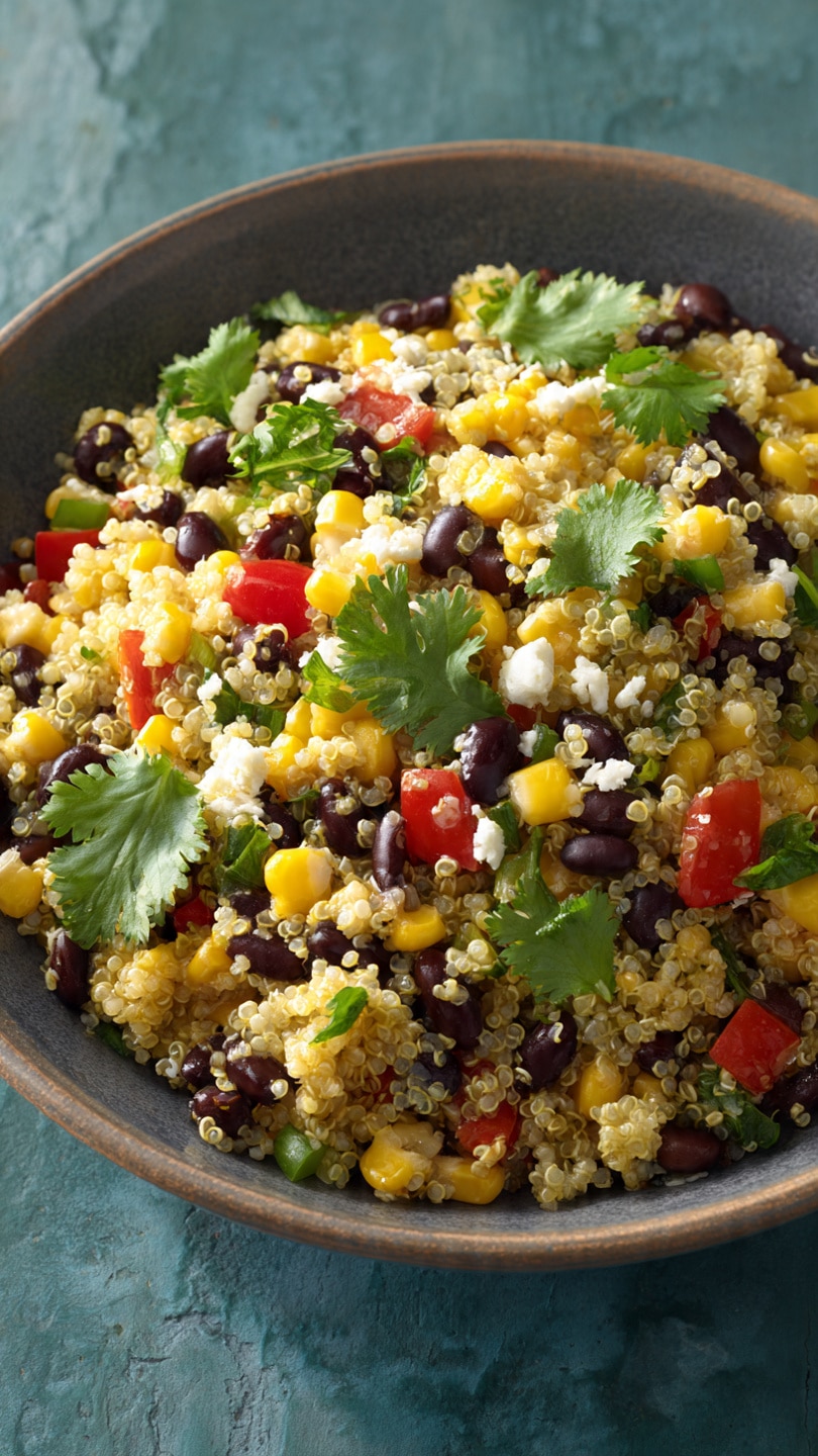 A fresh, protein-packed salad with fluffy quinoa, sweet corn, black beans, and a bright lime dressing. Light, nutritious, and perfect as a side or meal prep dish.