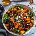 I love how this salad is both hearty and fresh. Roasted sweet potatoes and beets give it a warm, grounded flavor, while the vinaigrette and greens keep it light. It’s packed with nutrients, easy to prep in advance, and works just as well as a main dish or a side. It’s one of my go-to salads during fall and winter.