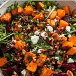 This sweet potato and beetroot salad is a colorful, hearty mix of roasted vegetables, leafy greens, and a tangy balsamic dressing. It’s nutritious, vibrant, and perfect as a side or standalone meal during fall and winter.