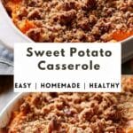Sometimes I like to add mini marshmallows on top during the last 10 minutes of baking for a more dessert-like twist. I’ve also swapped pecans for walnuts or left the nuts out entirely when cooking for people with allergies. To lighten it up, I’ve used maple syrup instead of sugar or almond milk in place of dairy milk. It’s easy to adapt to my preferences or what I have on hand.