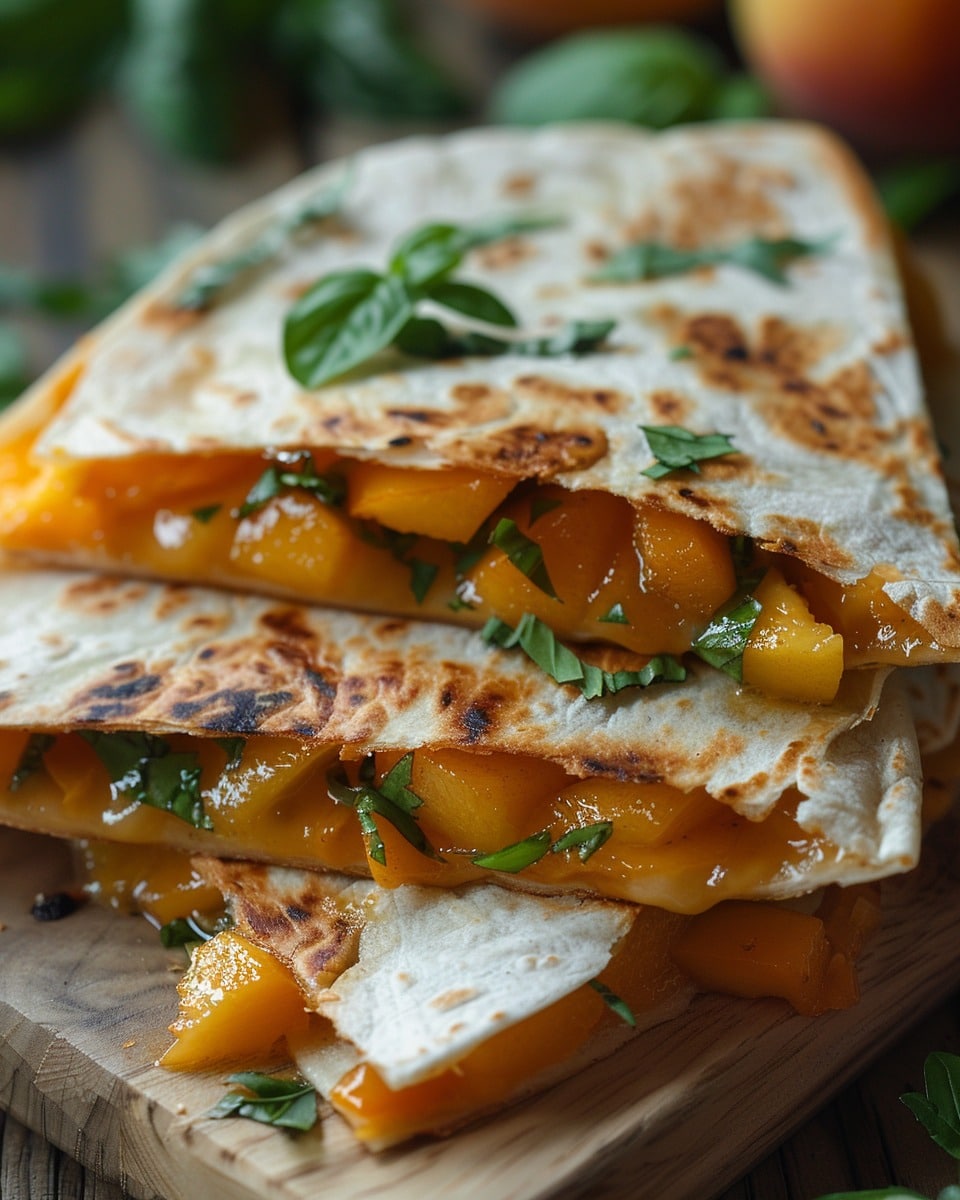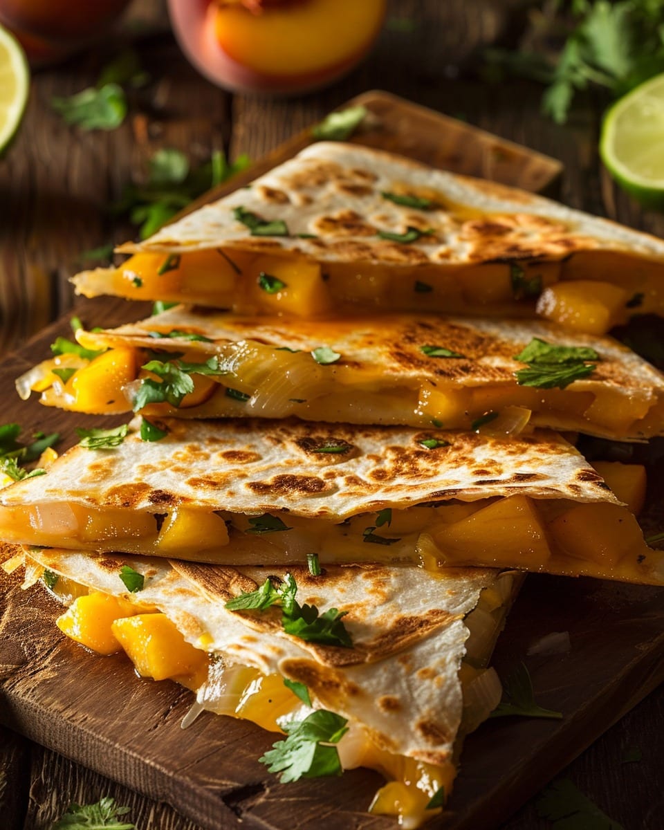 Sweet & Savory Peach Quesadillas are a unique twist on a classic, combining juicy peaches, melty cheese, and a touch of spice for a deliciously balanced dish perfect for lunch, dinner, or appetizers.