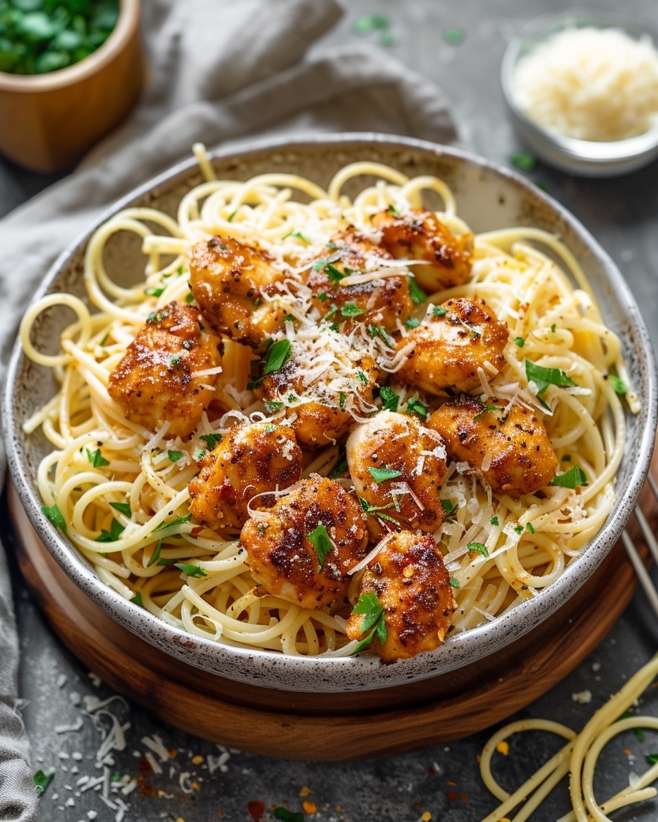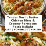 This tender garlic butter chicken bites and creamy Parmesan pasta dish combines golden, juicy chicken with rich, velvety pasta for a comforting, restaurant-quality meal at home. It’s quick, flavorful, and indulgent—perfect for any night of the week.