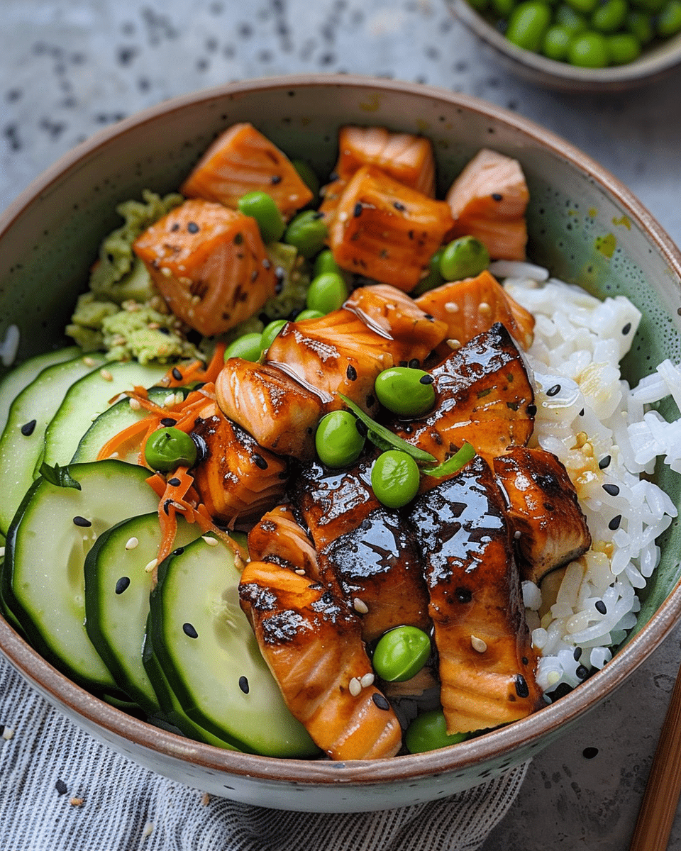 I love how this bowl delivers all the flavors of sushi without the need for rolling or special equipment. The salmon is rich and savory thanks to the sticky teriyaki glaze, and the mix of rice and veggies keeps things balanced and fresh. It’s customizable, quick to put together, and perfect for lunch or dinner when I want something that feels special but is easy to make.
