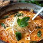 This Thai red curry noodle soup is rich, spicy, and deeply comforting. It blends creamy coconut milk, bold red curry paste, tender noodles, and fresh vegetables into one satisfying bowl that warms me from the inside out. Whether I’m in the mood for something cozy or craving Thai-inspired flavors, this soup always hits the spot.