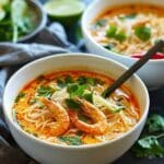 This Thai red curry noodle soup is a bold and comforting dish featuring spicy red curry broth, creamy coconut milk, tender noodles, and fresh vegetables. It’s easy to customize and ready in under 30 minutes.