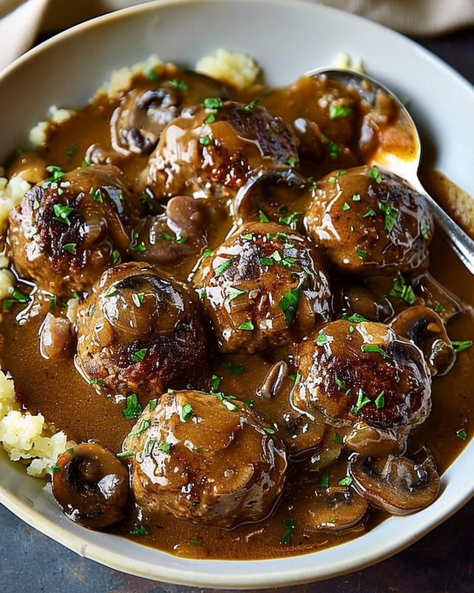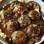 The Best Salisbury Steak Meatballs with Rich Mushroom Gravy is a comforting, hearty dish featuring tender meatballs simmered in a deeply savory mushroom-onion gravy. It’s a cozy twist on a classic, perfect over mashed potatoes, noodles, or rice.