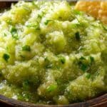 A fresh and vibrant tomatillo avocado salsa with tangy tomatillos, creamy avocado, lime, and cilantro blended into a smooth and flavorful sauce. Perfect for serving with chips, tacos, grilled meats, or bowls.