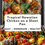 Tropical Hawaiian Chicken on a Sheet Pan is a vibrant, sweet-savory dish featuring juicy chicken, colorful bell peppers, caramelized pineapple, and a tangy marinade—all roasted together on one pan for a flavorful, easy meal with minimal cleanup.