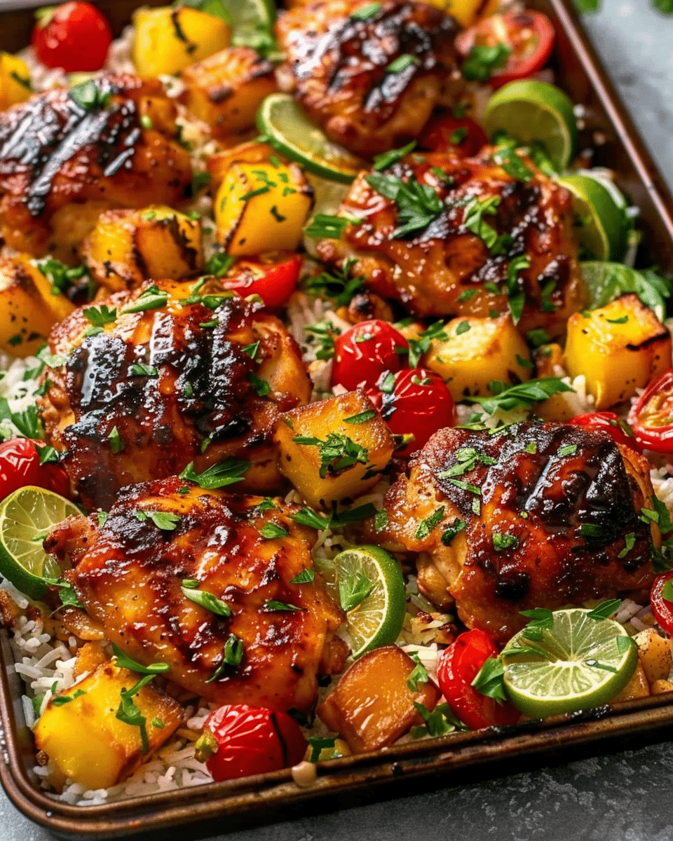 PrintTropical Hawaiian Chicken on a Sheet Pan