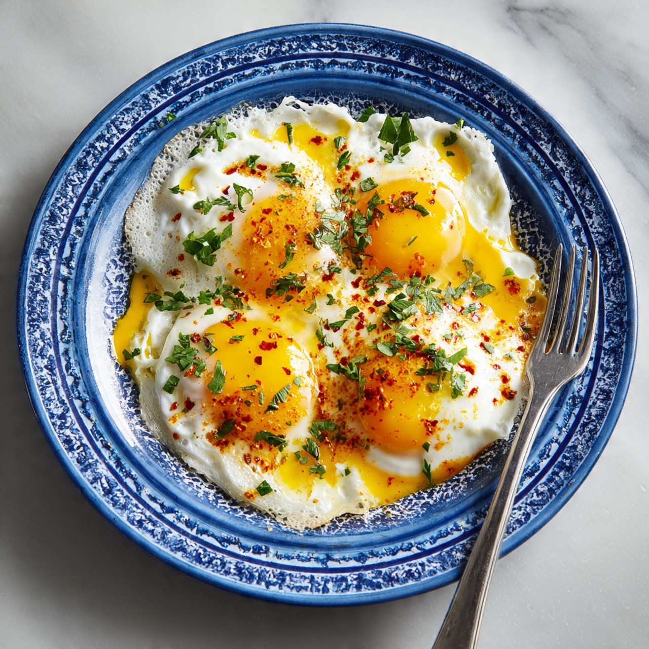 - Drizzle the spiced butter over the eggs and garnish with fresh herbs if desired.
