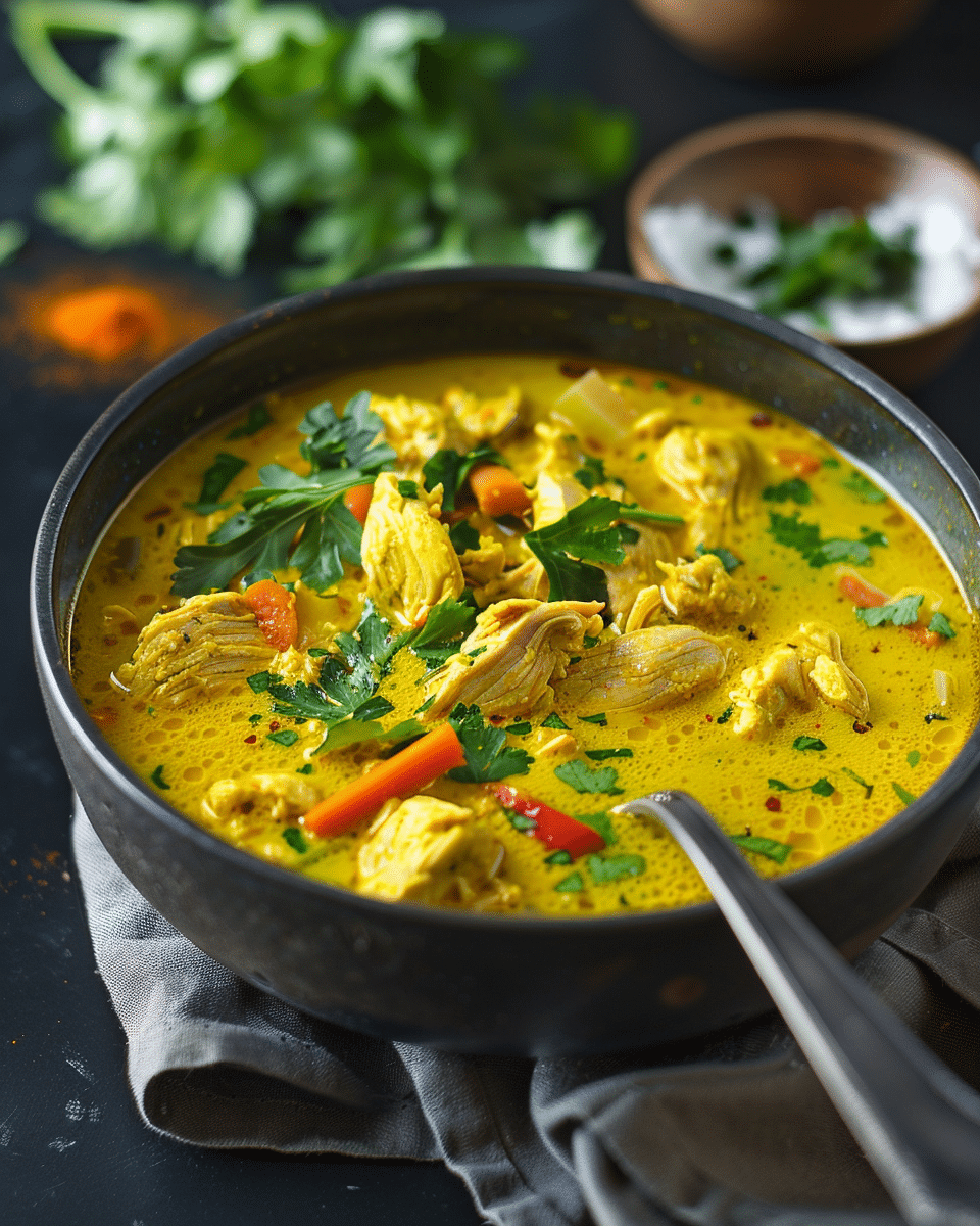 Turmeric Chicken Anti-Inflammatory Soup is a nourishing, immune-boosting recipe made with shredded chicken, turmeric, ginger, garlic, and coconut milk. This comforting golden soup is naturally dairy-free, gluten-free, and packed with anti-inflammatory ingredients. It’s the perfect 30-minute weeknight meal for wellness and flavor in every bite.