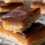 I sometimes use dark chocolate instead of milk for a richer flavor. If I want a salty-sweet twist, I sprinkle flaky sea salt on top of the chocolate layer. For a dairy-free version, I use coconut milk-based caramel and dairy-free chocolate chips. I’ve even tried adding a layer of peanut butter between the caramel and chocolate for a fun twist.
