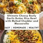 PrintUltimate Cheesy Beefy Garlic Butter Rice Bowl with Melted Cheddar and Mozzarella