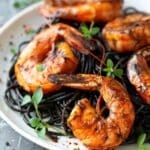Vampire Pasta is a dramatic and delicious Halloween dinner made with black squid ink pasta, garlic-sautéed shrimp, white wine, and lemon. This spooky seafood dish delivers bold flavor and elegance, perfect for festive themed dinners or Halloween parties.