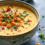 This Vegan Garlic Chickpea Soup is a cozy, nourishing bowl that brings comfort and nutrition together in one simple recipe. Made with hearty chickpeas, fresh garlic, herbs, and vegetables, it’s the kind of soup I turn to when I want something warm, filling, and wholesome without much fuss.