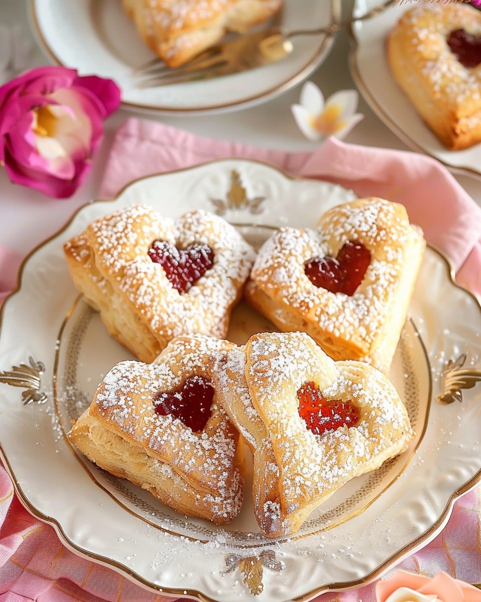 These Vegan Love Letter Pastries are flaky, golden puff pastry parcels filled with sweet fruit preserves and topped with a light dusting of powdered sugar. Easy to make and perfect for special occasions or cozy treats, they’re a simple yet elegant vegan dessert.