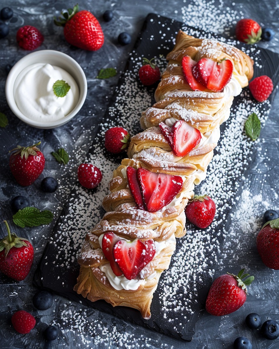 I sometimes swap strawberries for raspberries or blueberries when I want a different flavor. When I feel like adding extra sweetness, I drizzle a simple glaze made from powdered sugar and plant-based milk over the cooled danishes. I also like adding lemon zest to the cream filling for a brighter taste.