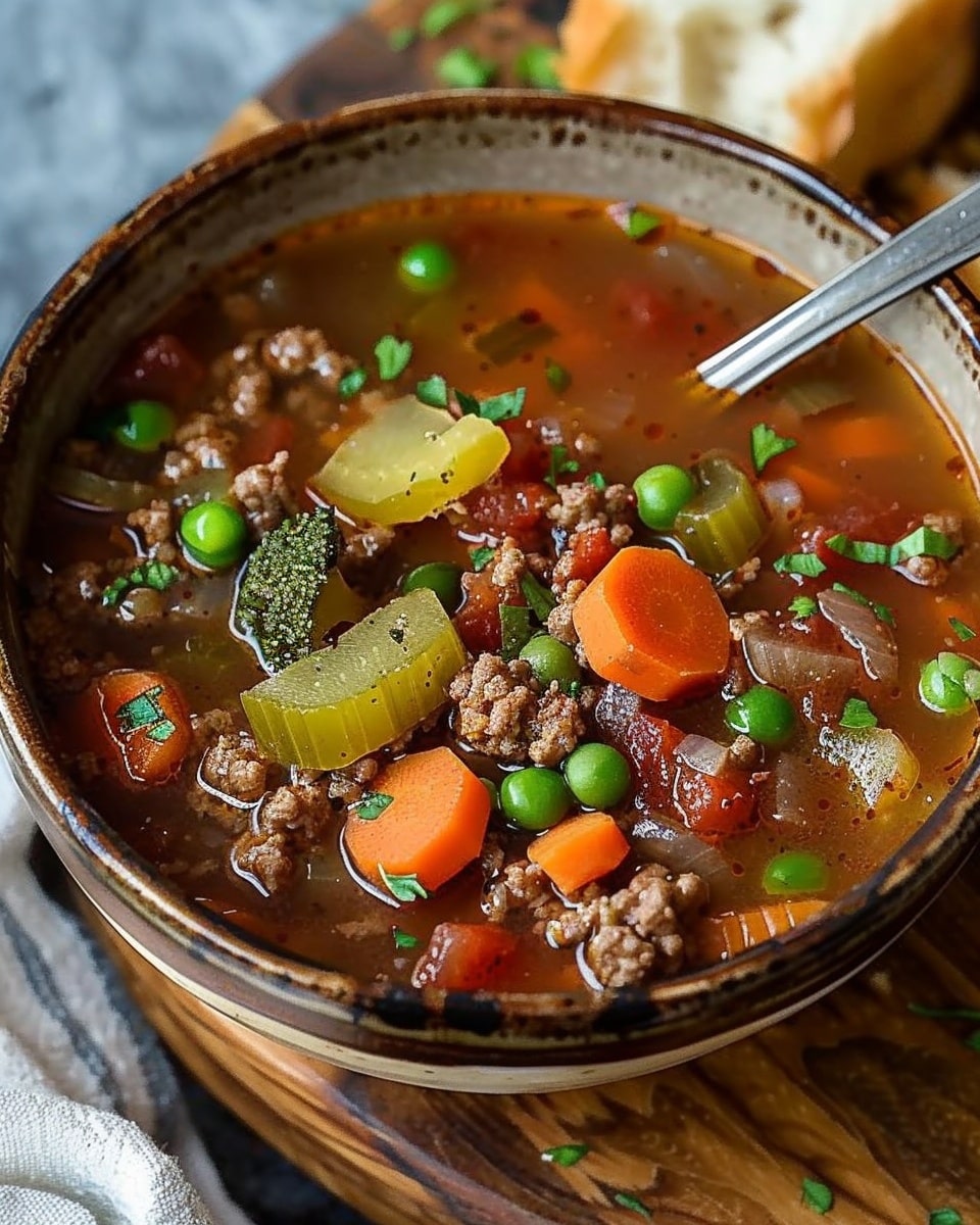 I love how simple and satisfying this soup is. It uses basic pantry staples and comes together in one pot with minimal effort. The ground beef adds protein and richness, while the vegetables bring texture and nutrition. It’s easy to adapt to what I have on hand, and it tastes even better the next day. Whether I’m feeding a crowd or just making dinner for two, this soup always delivers big flavor with little fuss.