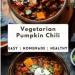 This hearty Vegetarian Pumpkin Chili is a cozy, meatless meal packed with bold spices, beans, and pumpkin puree. Perfect for fall, meal prep, or a comforting weeknight dinner, this vegan-friendly chili is rich, nourishing, and easy to make.