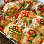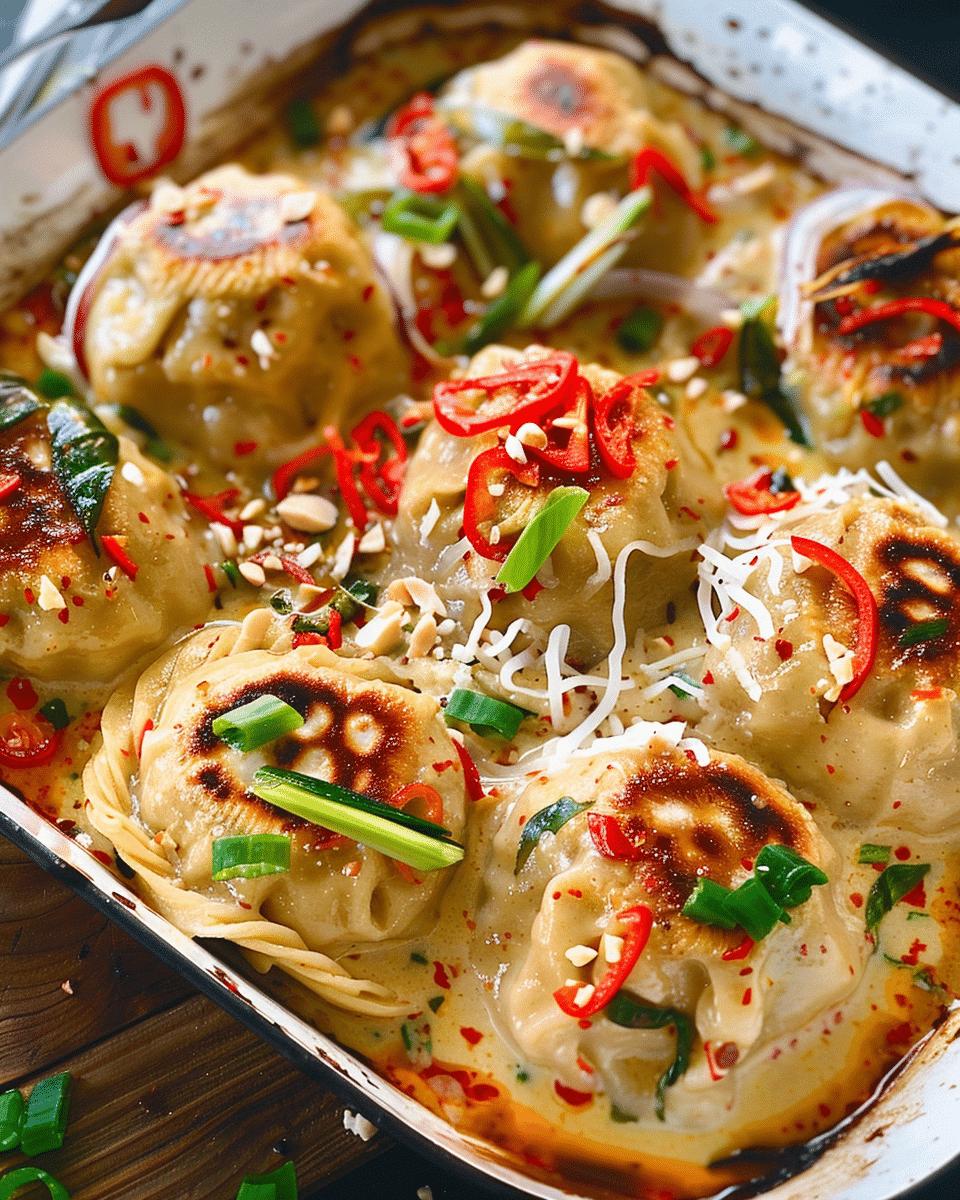 Baked Potstickers in Creamy Curry Sauce is a bold and cozy fusion dish where frozen dumplings are baked to crisp perfection and smothered in a rich Thai-inspired curry sauce. Quick, flavorful, and perfect for weeknights or casual dinners.