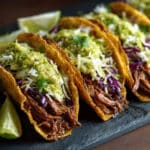 I store leftover shredded beef in an airtight container in the refrigerator for up to 4 days. I reheat it gently on the stovetop with a splash of broth to keep it moist. I prefer assembling and crisping the tacos fresh, but if I have leftover assembled tacos, I reheat them in a skillet or oven at 375°F (190°C) to restore their crispiness. The beef can also be frozen for up to 3 months.